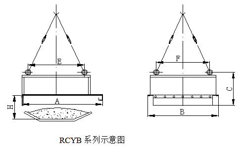 四、RCYB系列懸掛式手動永磁除鐵器主要技術參數、外形尺寸                      執行標準:JB/T8711
